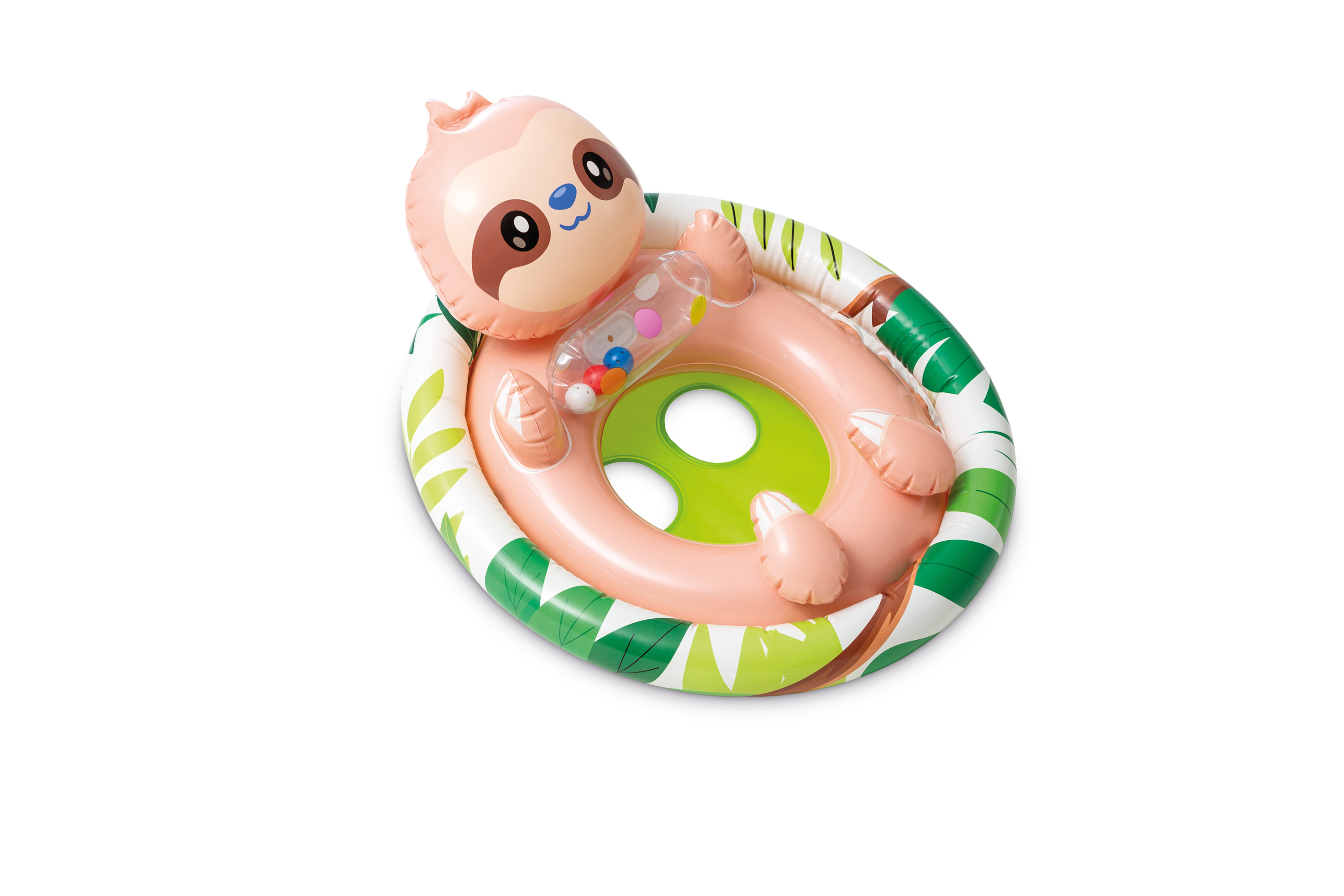 Надувной круг имеет дно с прорезями для ног, благодаря чему малыш не выпадет из круга и будет уверенно чувствовать себя в воде.