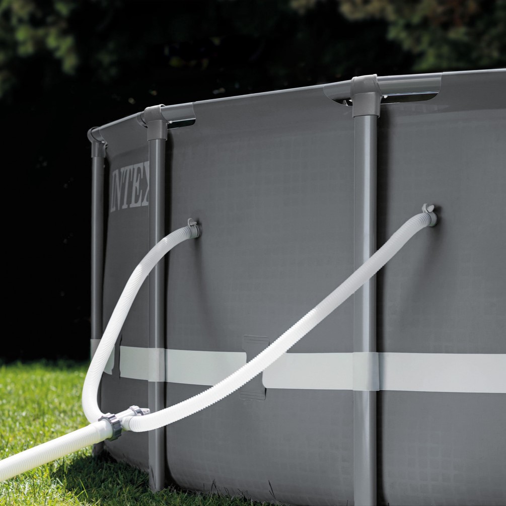 Новая модель круглого каркасного бассейна Intex 26326 серии Ultra XTR, с усиленным оцинкованным каркасом из нержавеющей стали и новой, более толстой чашей. Новая система фиксации элементов (кнопочная) каркаса делает сборку простой и быстрой. Весь бассейн опоясывает полипропиленовая лента, которая поддерживает форму бассейна.