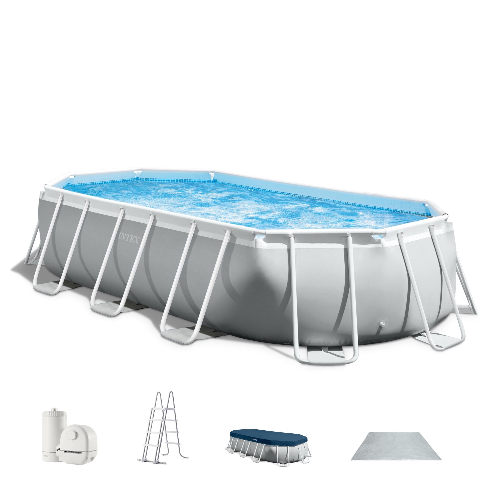 Intex предлагает линейку Prism Frame Oval Pool Set. Это элегантный овальный дизайн, ультра-модный серый цвет и высокоя прочность.