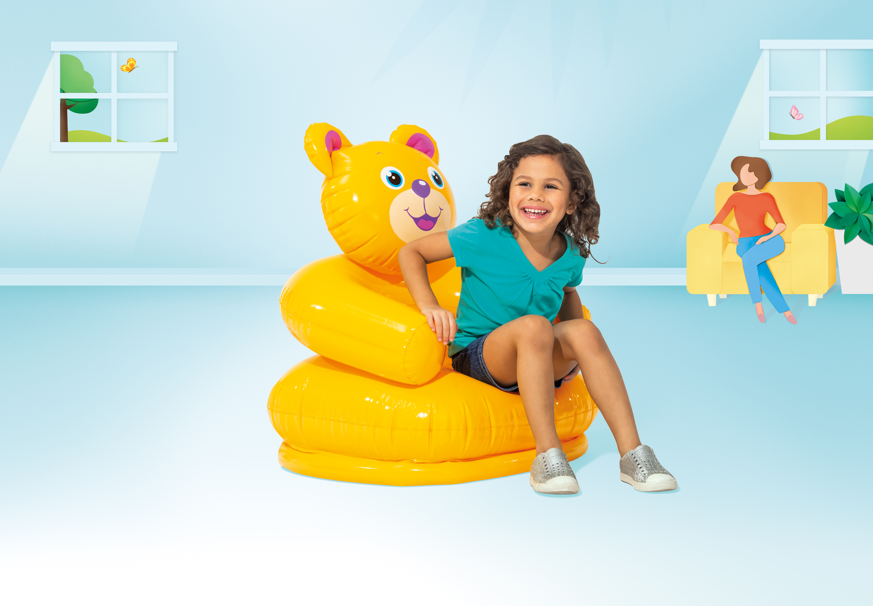 Надувные кресла от Intex имеют исполнение в двух видах – медведь и коала. Они впишутся в любой интерьер детской , благодаря своему дизайну. Кресла легкие, но очень прочные и устойчивые – максимальная нагрузка составляет 35 кг. Изготовлены кресла из высококачественного винила толщиной 0,30 см.