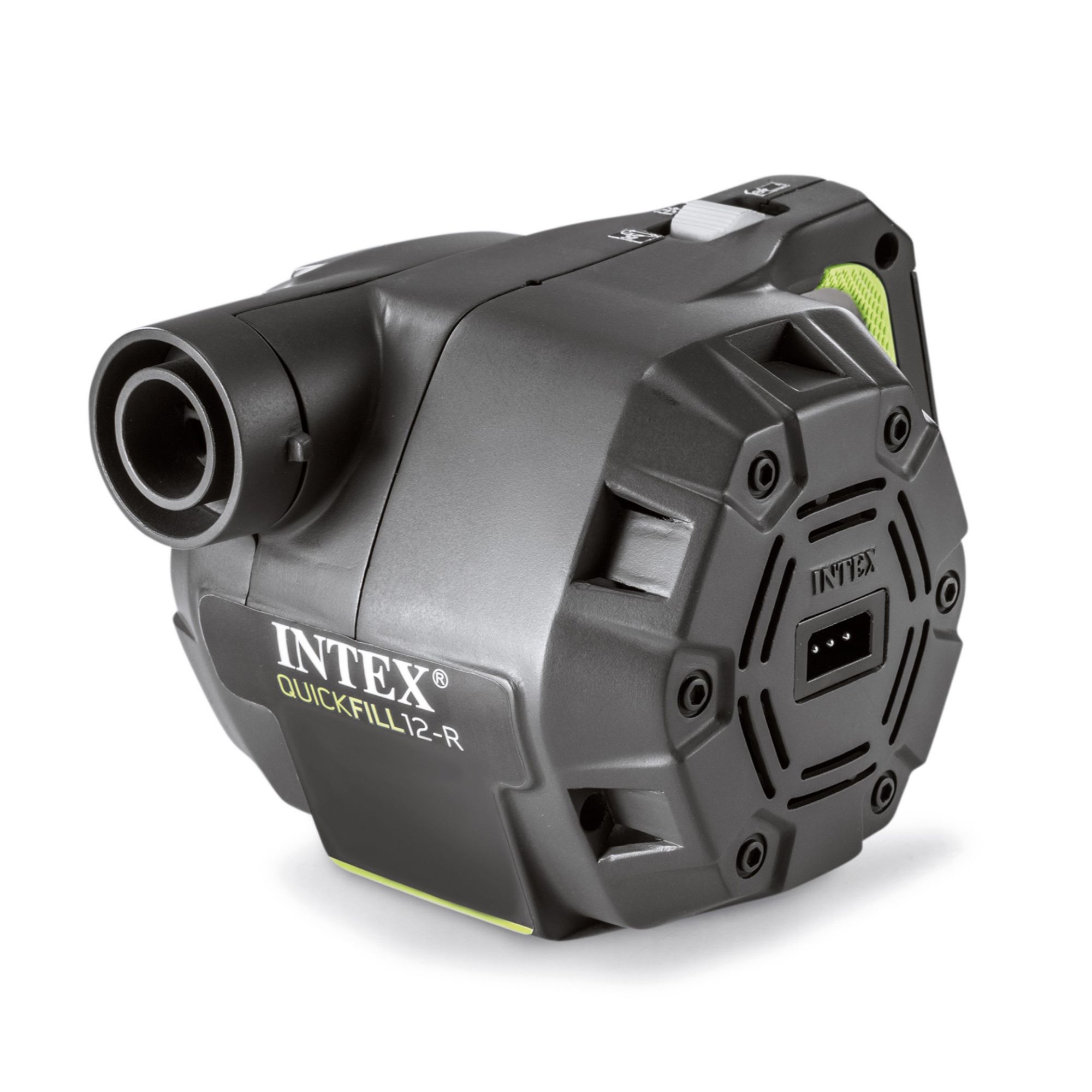 Электрический аккумуляторный насос Intex Quick Fill 66642 имеет два отверстия — одно для накачивания, другое — для спуска.